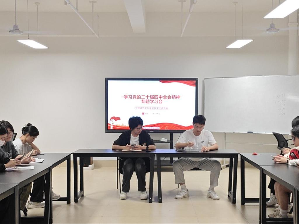 11月12日,医学院在学生社区第三园区开展“学习党的二十届四中全会精神”专题学习会,学生代表20多人参加活动。