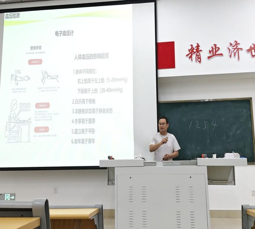 活动前期,协会通过线上宣传和搭建专属群聊,让更多宁师学子提前接触健康知识,同时备足实操材料保障体验质量。讲座现场,我校学生围绕血压、血型、血糖等核心内容展开深度学习,不仅对基础健康知识的认知更为深入,更掌握了相关指标的正确测验方法与用具使用技巧。协会成员也全程参与其中,在认真吸纳专业知识、拓展阅历的同时,积极投身动手实践,熟练操作血压计、血糖仪等设备,为后续开展服务积累了扎实经验。