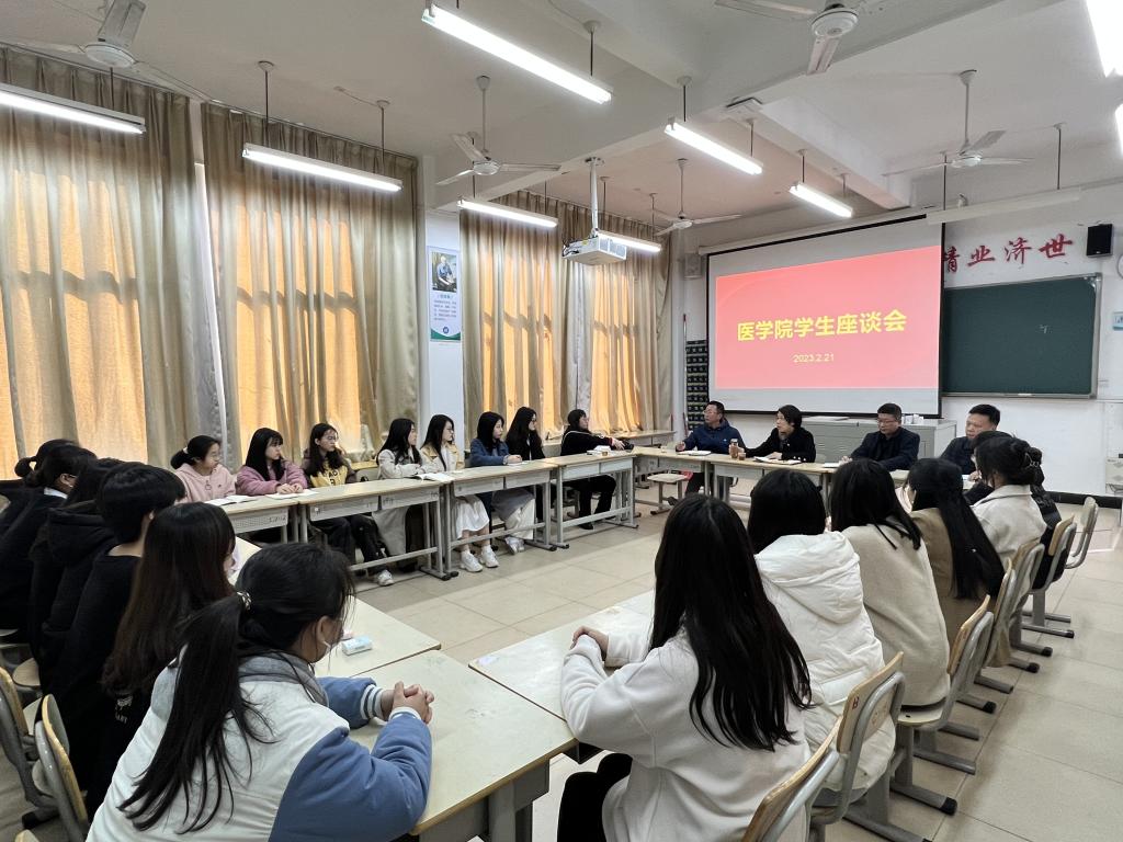 2月21日下午,校党委委员、副校长陈旺玉深入医学院召开学生代表座谈会,与学生面对面交流。校学工处、资后处负责人以及医学院学生代表20多人参加座谈会。