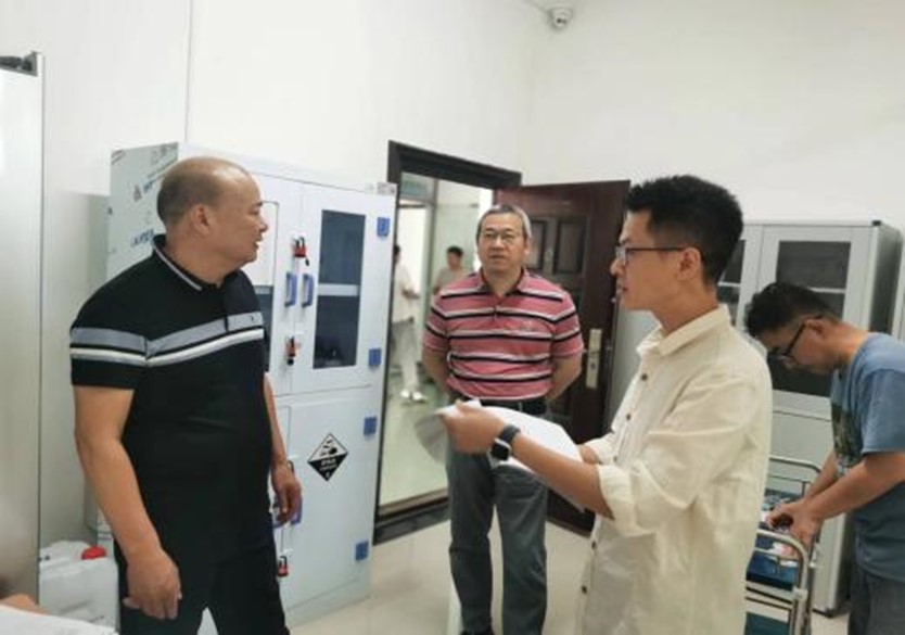 检查组一行查阅了易制毒及危险化学品的存储情况、标识标签、使用记录等相关台账,特别是对易制毒及危险化学品领用及处置情况进行重点检查,并深入毒理药理实验区,对实验环境、布局及操作流程、水电安全、消防安全等高风险隐患进行检查排查。督促实验室管理人员严格落实化学物品储存室的安全管理制度和应急处置机制,坚决防止易制毒化学品流失。针对检查中发现的问题和隐患检查组当场提出了整改意见与建议。