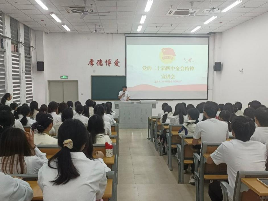 为引导青年学子深学全会精神,11月11日下午,我院在医教楼阶梯教室举办“学习贯彻党的二十届四中全会精神”专题宣讲会,院团委书记林志华主持并主讲,各团支部团员代表及团委干部参会。