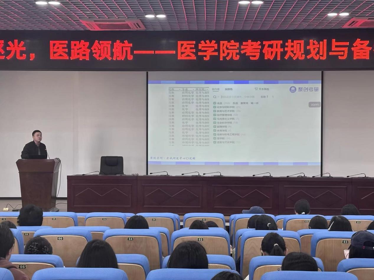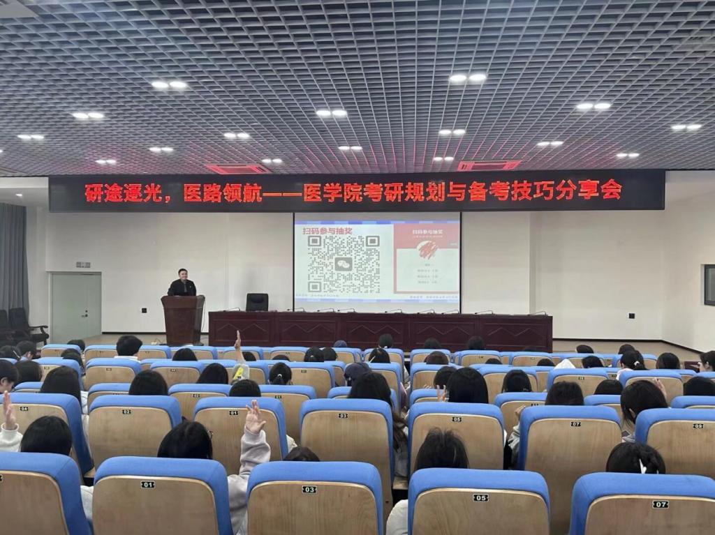 为帮助医学专业学生明晰考研方向、科学规划备考路径,12月23日,我院举办“研途逐光,医路领航”考研规划与备考技巧分享会。我院在校学生500多人参加分享会。