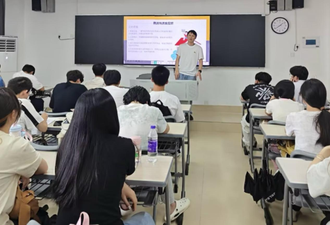 班会课上,班主任围绕汛期安全、交通安全、人身安全、网络安全、用电安全等方面开展专题教育。一是针对汛期安全开展科普,详细解读暴雨预警信号分级标准,从“避风避险、信号求救、设备配备、应急处置”四个维度给出台风来临时的防护建议。二是提醒返乡途中要注意交通安全、财物、人身安全;提醒暑假实习、见习留校同学要注意宿舍用电安全,遵守“禁用、合规、远离、断电”四大准则,筑牢用电安全防线。三是重点剖析网络安全隐患:警惕来路不明的邮件链接、虚假红包陷阱等风险,提醒学生切勿在公共网络环境下进行网购或网银操作。四是聚焦应急处置与逃生技巧,要求学生熟悉教学楼与宿舍的紧急出口标识,掌握火灾中毛巾捂口鼻、洪水时救生衣穿戴等技能;牢记救援热线,确保遇险时能快速求助等。