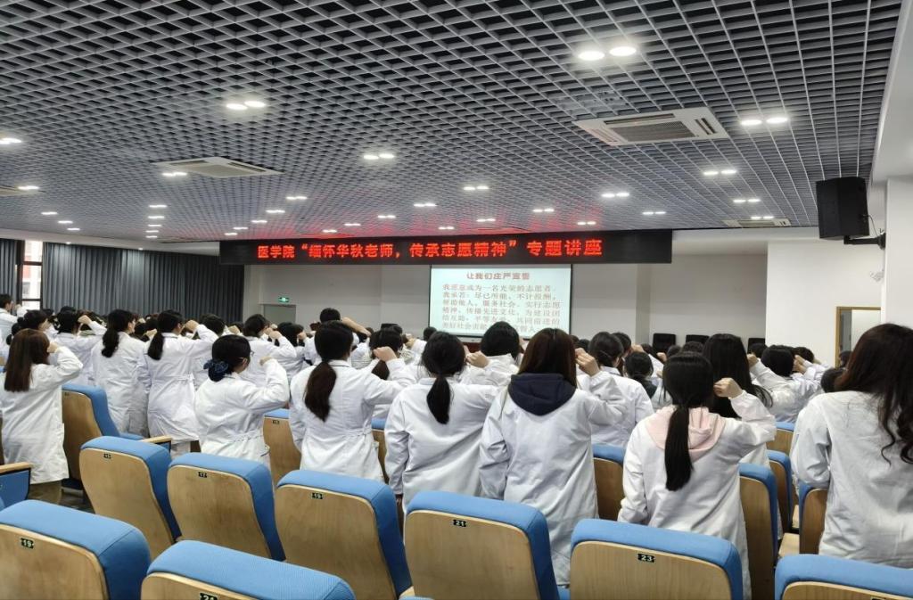 同学们表示,要学习王华秋老师无私奉献精神和宽大博爱胸怀,传递“大爱无声、奉献不止”的精神,大力弘扬新时代雷锋精神和志愿者精神,从生活点滴入手,从身边事做起,帮助他人、奉献社会、报效国家,以实际行动践行医者担当。