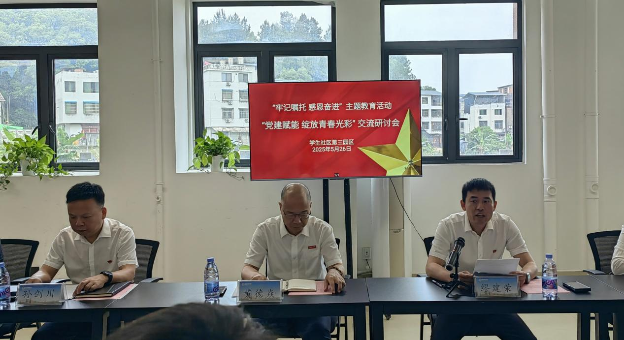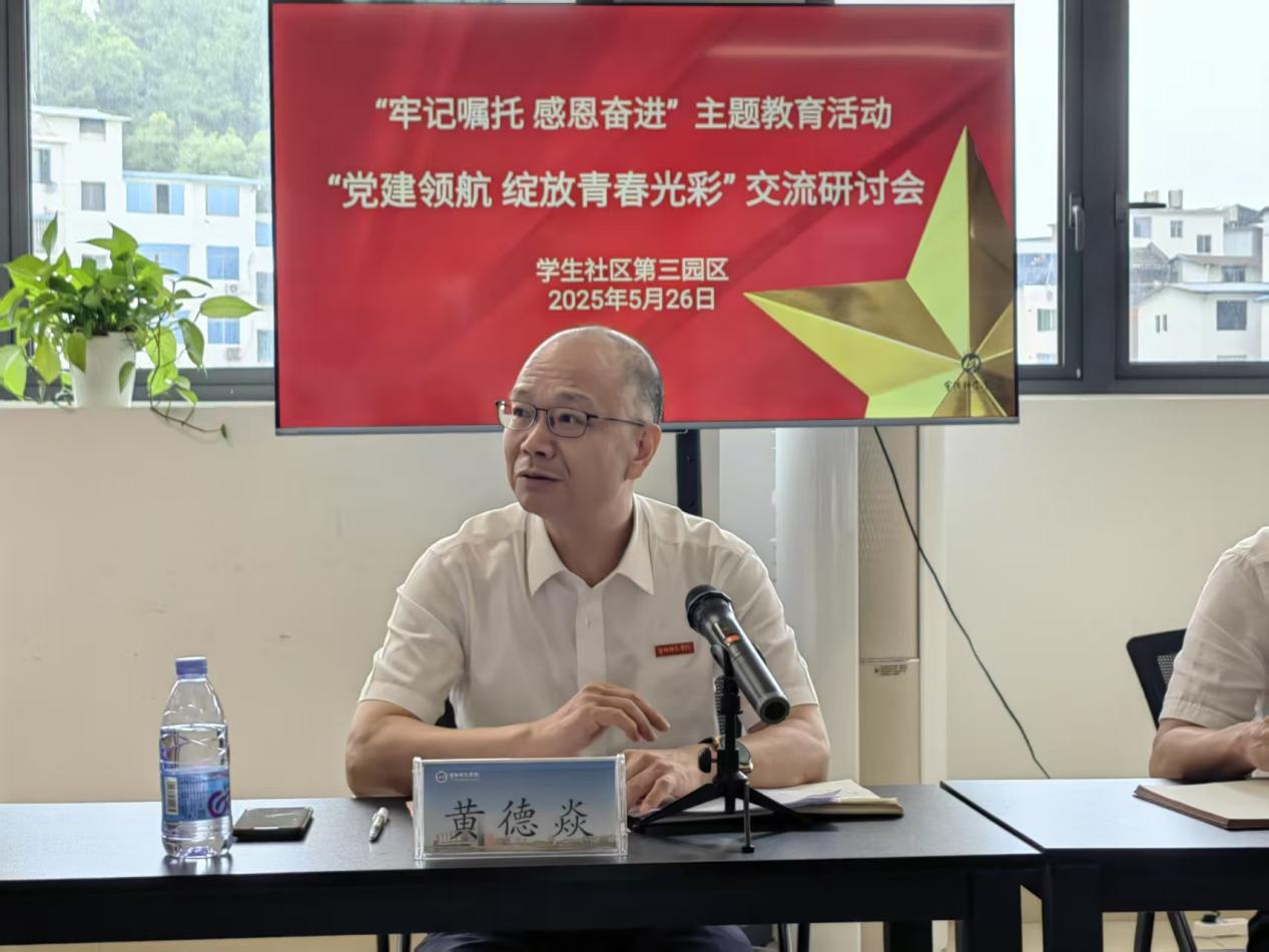 5月26日,“一站式”学生社区第三园区党委召开“党建赋能,绽放青春光彩”主题交流研讨会。本次研讨会是学校深入开展“牢记嘱托 感恩奋进”主题教育系列活动之一,校党委组织部部长黄德焱出席会议并讲话。