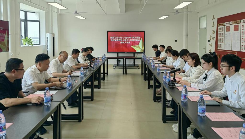 黄德焱在讲话中指出,“一站式”学生社区是新时代思想政治工作创新实践的重要阵地,既是推进“时代新人铸魂工程”的重要载体,也是提升思政引领力的重要抓手,在学生社区开展主题交流研讨,是深入贯彻落实习近平总书记关于高校思想政治工作的重要论述的具体行动,是对习近平总书记在宁德工作期间“六进宁师”提出的“青年学生要把爱国情感与使命和责任相结合,立志报国,为国奉献”以及《习近平180余字寄语闽东大学生》等殷殷嘱托的再部署、再落实、再推进。他希望园区党委要提高政治站位,牢记嘱托,落实立德树人根本任务;坚持党建引领,感恩奋进,打造学生社区思政工作新品牌;创新工作机制,协同联动,探索学生社区建设新模式。