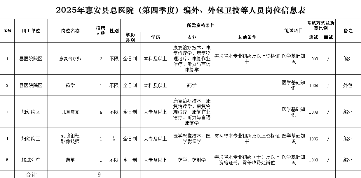 报名地点:惠安县医院门诊楼5楼519人力资源与绩效部