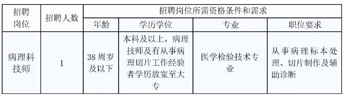 招聘职位:病理科技师