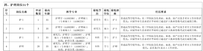 招聘职位:护士