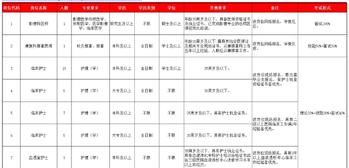 招聘职位:临床护士